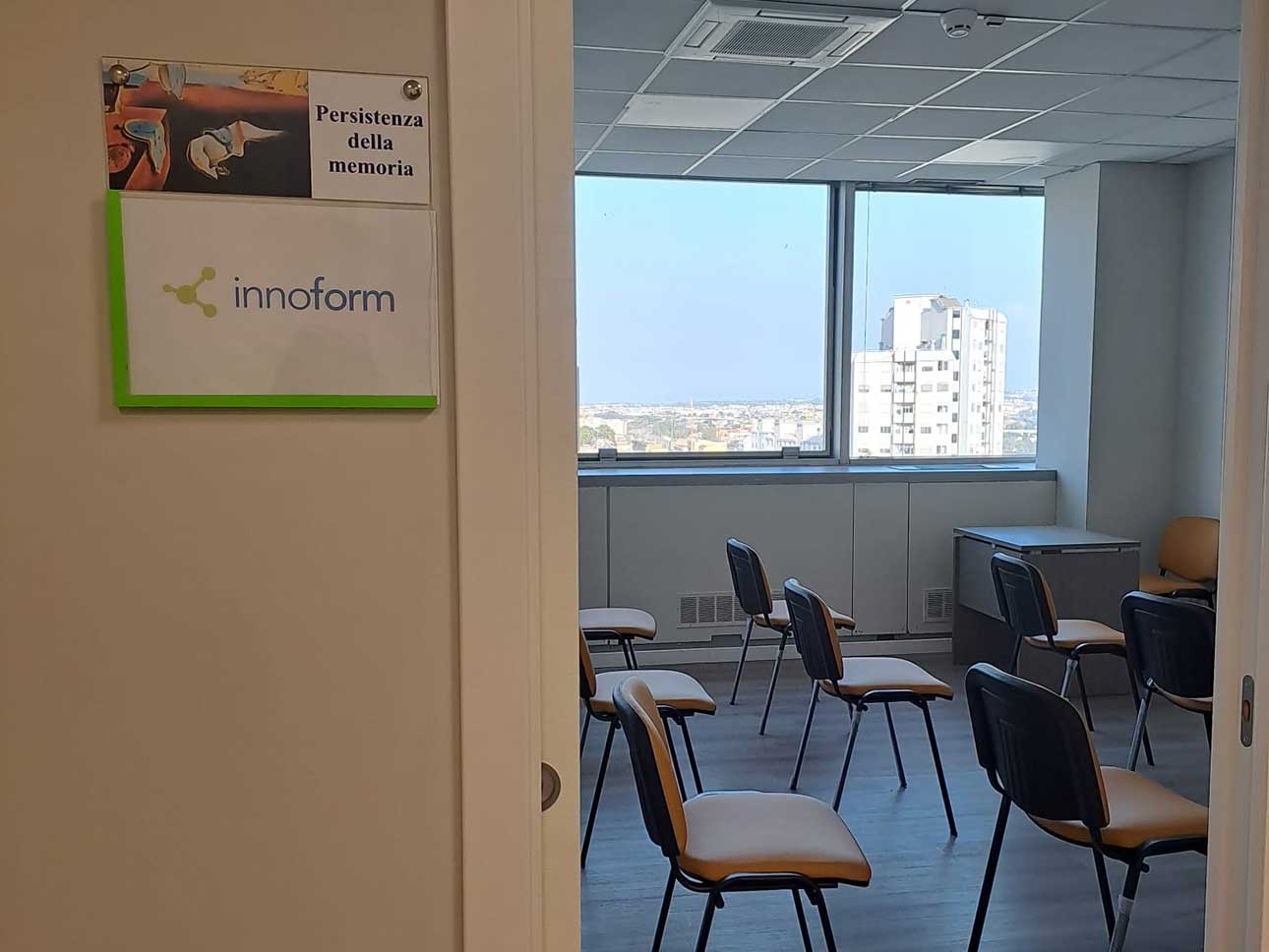 Noi di Innoform siamo convinti che il tempo dedicato alla formazione e all’apprendimento debba essere anche piacevole. Questo dipende non solo dalla professionalità e dall’esperienza dei formatori, ma anche dall’ambiente in cui il corso viene erogato. Per tale ragione forniamo ai nostri clienti locali organizzati, confortevoli, climatizzati, luminosi ed esteticamente piacevoli.